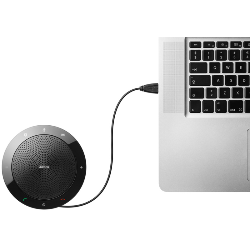 Hear and be heard on your conference calls with the Jabra Speak 510 MS USB & Bluetooth Speakerphone. Certified to work with Microsoft Skype for Business, this round speakerphone features a 360°, omnidirectional microphone with echo cancellation to help ensure clear conference calls with multiple participants in the same room.