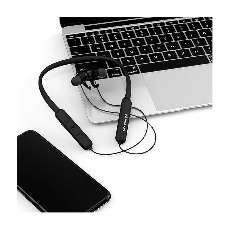 Bluetooth version: v5.0 Wireless range: 10 m Frequency: 2.4GHz, Class 2 Supported profiles: HFP,HSP,A2DP,AVRCP Multipoint technology: Yes Driver unit: 10mm Frequency response: 20-20kHz Sensitivities: 105 3dB Impedance: Music play time: up to 6 hours Talk time: up to 6 hours Standby time: up tp 20 hours Charge time: up to 1.5 hour Volume control: Yes Cord length: 26cm x 2 Input: Micro-USB Bluetooth pairing name: Tellur Bound