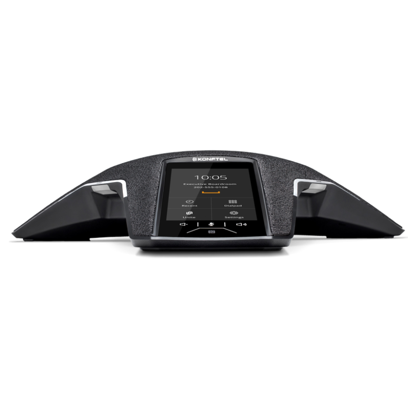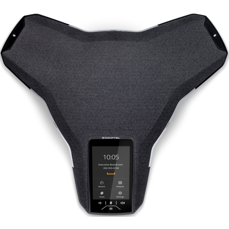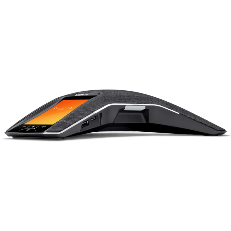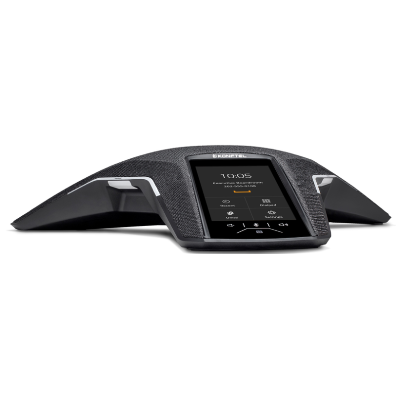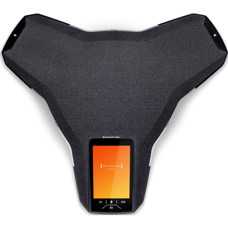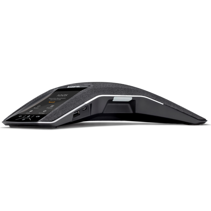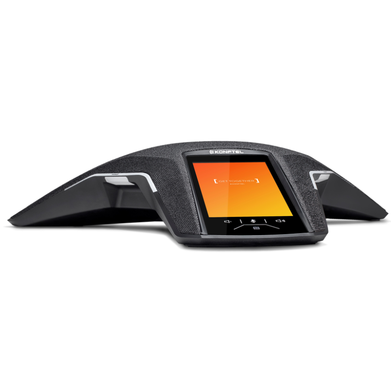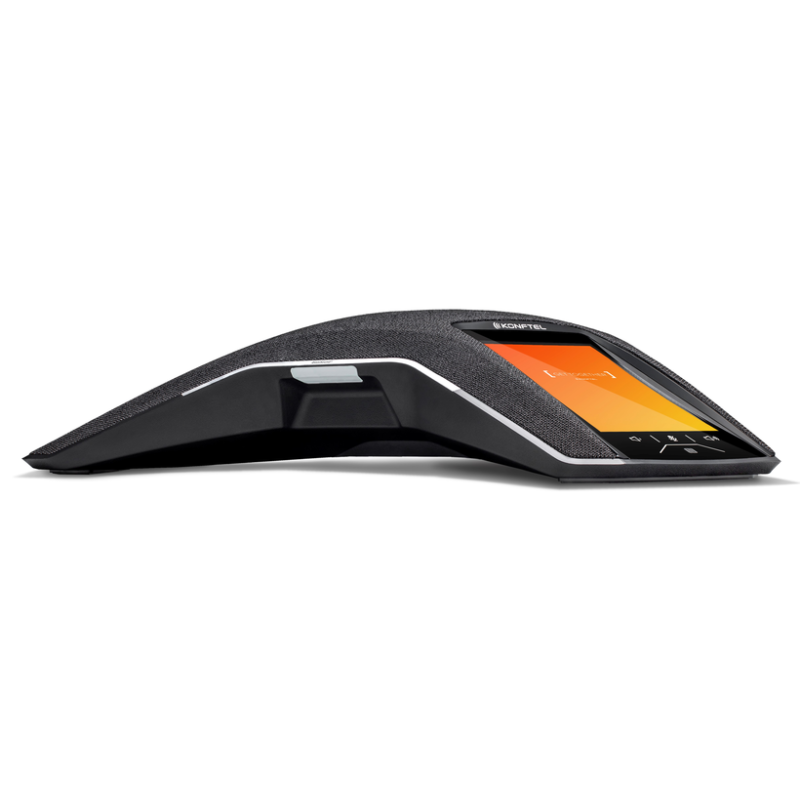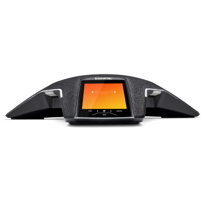 Hybrid conference phone with intuitive interface. OmniSound audio technology brings a natural sense of presence to the dialog. Suits everything from small to extra large meeting rooms, thanks to optional Konftel Smart Microphones and daisy-chain capabilities. Konftel 800 brings true delight to all kinds of distance meetings.