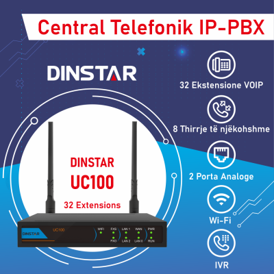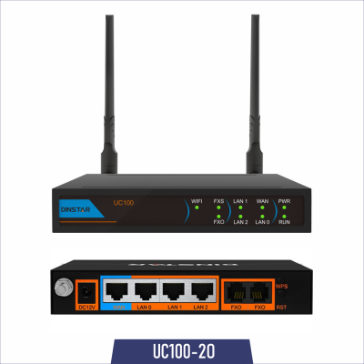is an all-in-one Universal Gateway with built-in IP PBX features, designed for SOHO and small businesses that can increase communication efficiency, reduce telephony costs and provide easy management features. It 2 Port FXO, analog interfaces and VoIP features, as well as data features like Wi-Fi hotspot, VPN. With 32 SIP users and 8 concurrent calls, UC100 is a perfect choice for small businesses.