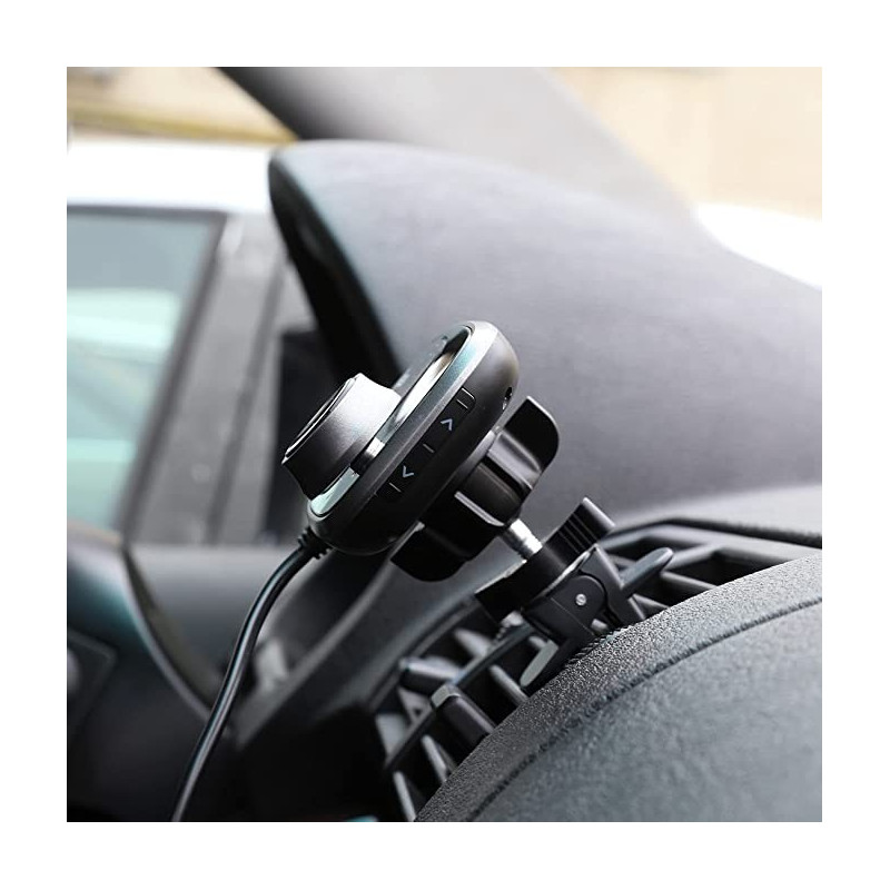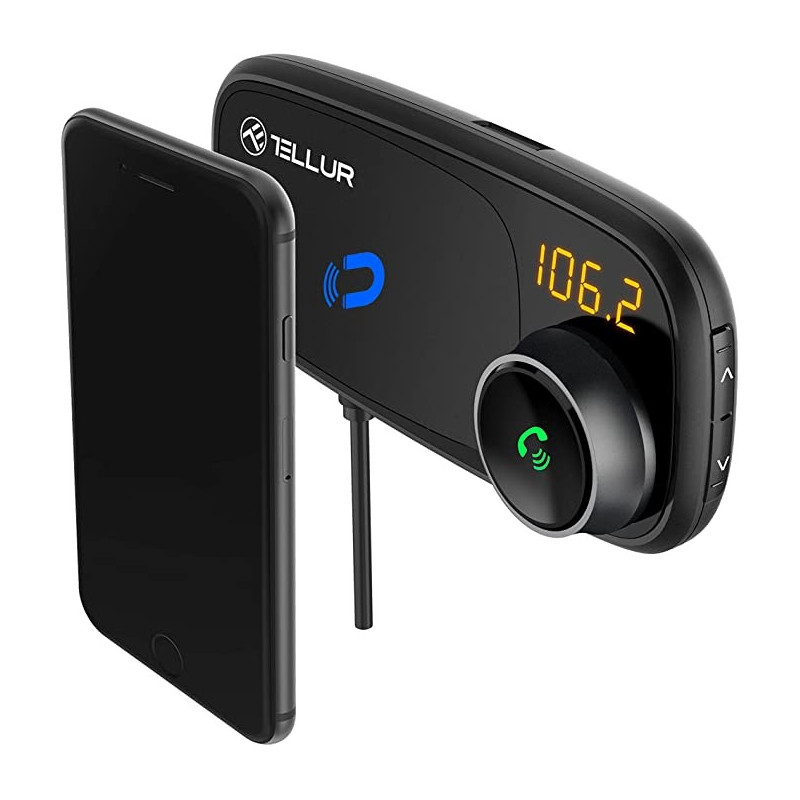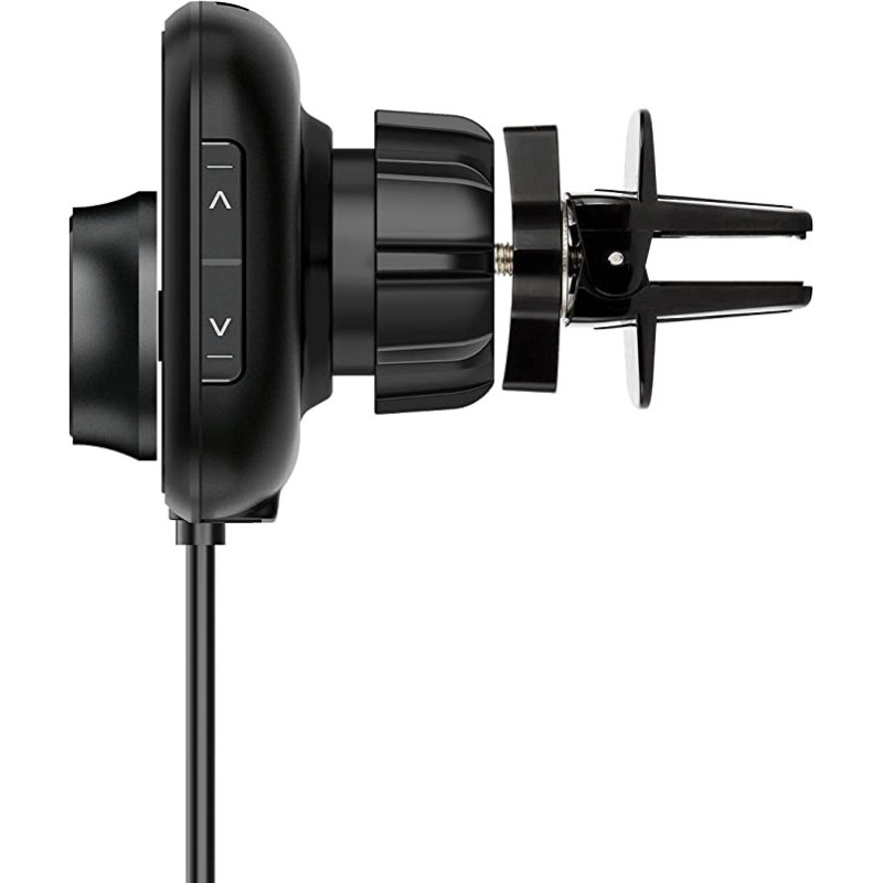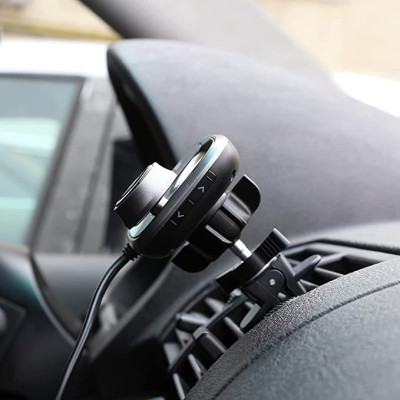 Turn any road trip into a musical trip with this Bluetooth FM transmitter. It can play music from your smartphone/tablet through Bluetooth or directly from your microSD playlist. You can mount it easily on your car's air vent with its magnetic holder and use it to fast charge your smartphone/tablet with its QC3.0 USB port. The B4 transmitter remembers the last played song and FM frequency before shutting down and takes good care of your hands-free calls with its noise suppression and echo cancellation in-call functions.