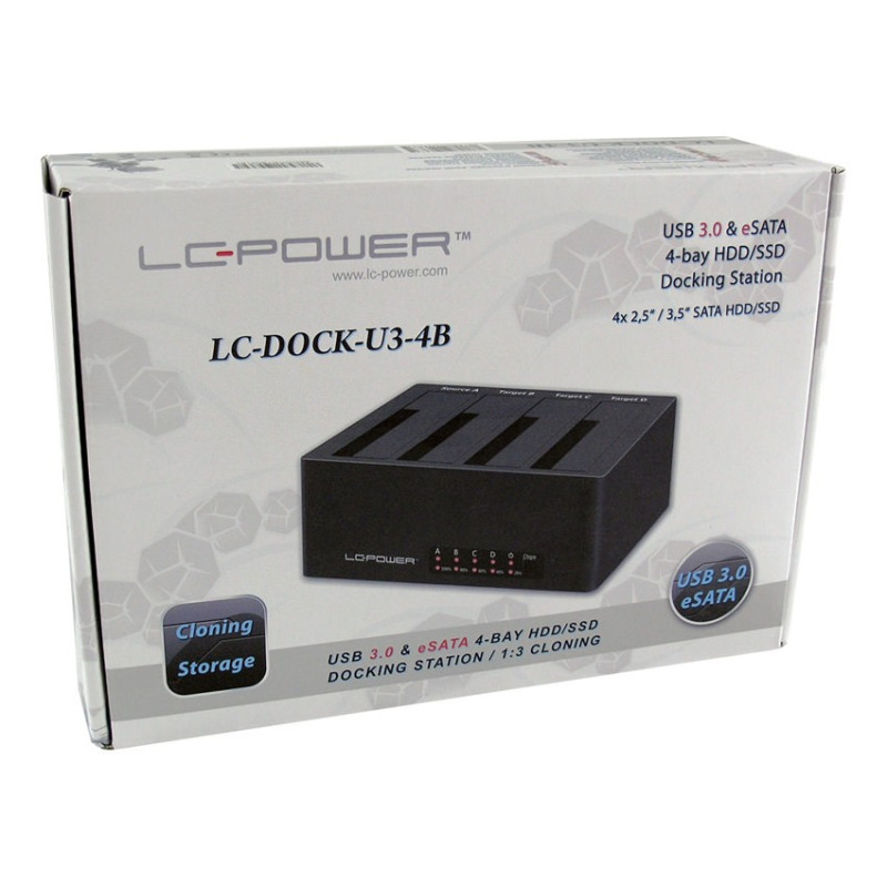 USB 3.0 & eSATA 4-bay HDD docking station with one touch cloning feature.