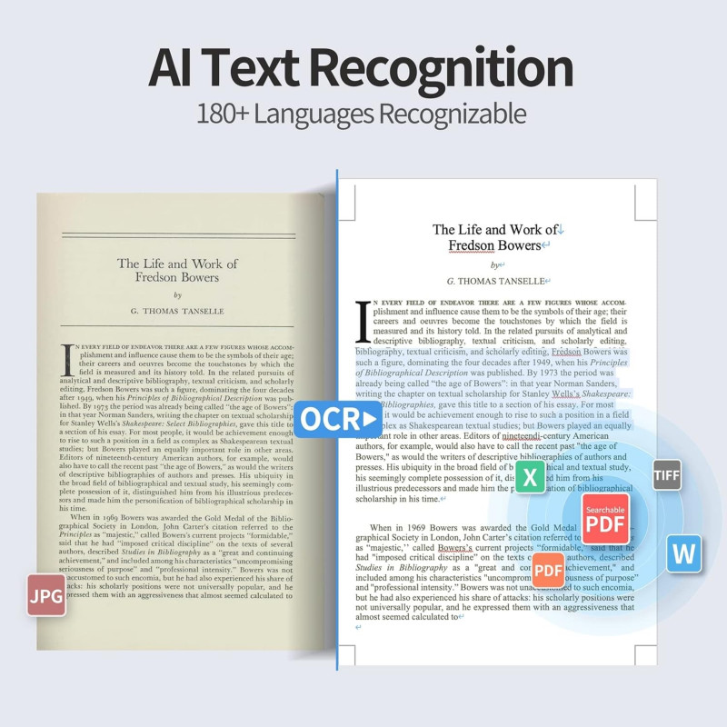 Output Formats JPG, PDF, Word, Excel, Searchable PDF, TIFF
