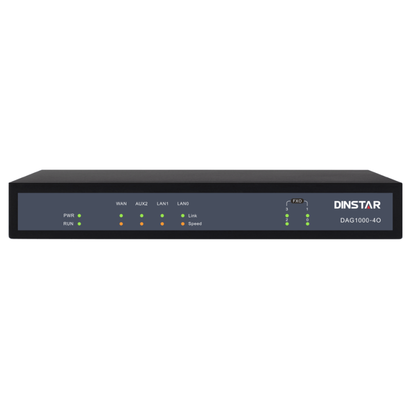 DAG1000-4O FXO analog gateway is a type of access gateway offering seamless connectivity between IP-based telephony networks and legacy telephones (POTS) and PBX systems. The analog gateway has 4 FXO ports and is used to connect to analog PBX or the PSTN lines of telecom carriers. With the standard SIP protocol, it's compatible with leading IMS/NGN platforms and SIP-based IP Phone systems. It provides low-cost and easy-to-use VoIP solutions for small businesses, SOHO, remote offices as well as enterprises with multiple branches.