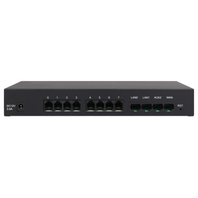 DAG1000-8O FXO Analog VoIP Gateway is a type of access gateway offering seamless connectivity between IP-based telephony networks and legacy telephones (POTS) and PBX systems. The analog gateway has 8 FXO ports and is used to connect to analog PBX or the PSTN lines of telecom carriers. With the standard SIP protocol, it's compatible with leading IMS/NGN platforms and SIP-based IP Phone systems. It provides low-cost and easy-to-use VoIP solutions for small and medium businesses, call centers, SOHO, remote offices as well as enterprises with multiple branches.